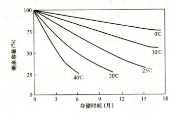 表4—1 閥控電池儲(chǔ)存時(shí)間與環(huán)境溫度的關(guān)系